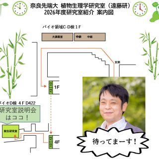 News 2026年度 遠藤研説明会@D422を開催します NAIST新入生の皆様、ご入学おめでとうございます🌸 植物生理学研究室(遠藤研)の説明会は、D棟 D422号室にて以下の日程で予定しています。研究室の様子や研究プロジェクト、就活関連などについてご紹介します。タイミングが合えば、ラボの学生さ... 2026.04.02 News