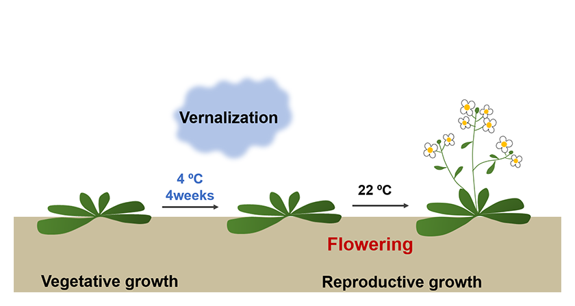 The timing of flowering in plants is determined by environmental cues such as temperature and day length. Many plant species flower and set fruit only after experiencing the cold of winter, followed by the warmth of spring, a process called vernalization. In recent years, climate change has increased the likelihood that plants may flower at unusual or inappropriate times, raising concerns about potential impacts on the stable production of food. For these reasons, developing technologies that allow us to regulate the timing of flowering is an important challenge. Our research group has identified, for the first time in the world, a small molecule capable of delaying flowering without the use of genetic modification. We named this compound “Devernalizers (DVRs).” We found that DVRs act by inducing epigenetic changes within the nucleus. This work highlights a new possibility: controlling flowering in plants through chemical regulation of their epigenome.