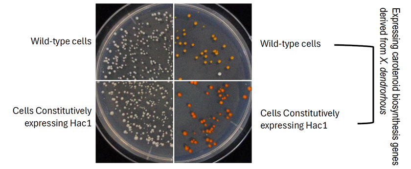 The production of heterologous secretory proteins and lipid molecules from yeasts is a promising biotechnology. The endoplasmic reticulum (ER) is an organelle in which these materials are synthesized. Genetic modifications that upregulate ER function may lead to higher production of these materials. In many yeast species, including Saccharomyces cerevisiae, the ER stress response is governed by the transcription factor Hac1, which transcriptionally induces various ER-related genes in response to ER dysfunction. While S. cerevisiae mutants constitutively overexpressing Hac1 contained the ER that was artificially enlarged and enforced, they grew fairly slowly and did not seem to be suitable for industrial use. In our current research, we solved this drawback of the constitutively Hac1-expressing cells through deletion of a histone-demodification enzyme, expanding possibilities for their application in the production of commercially beneficial materials.