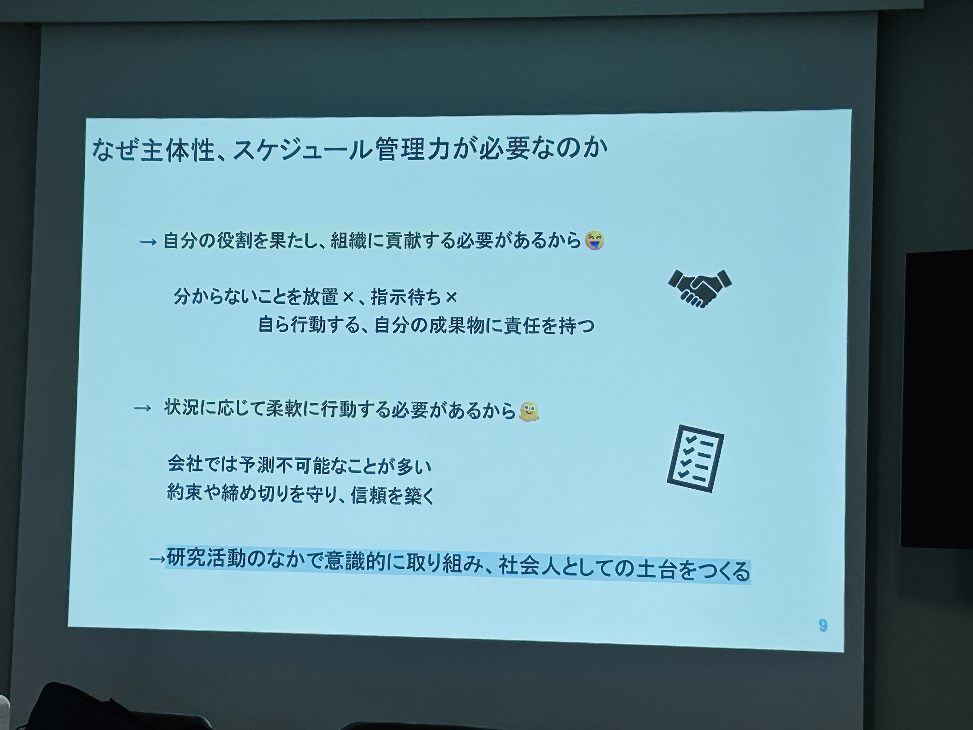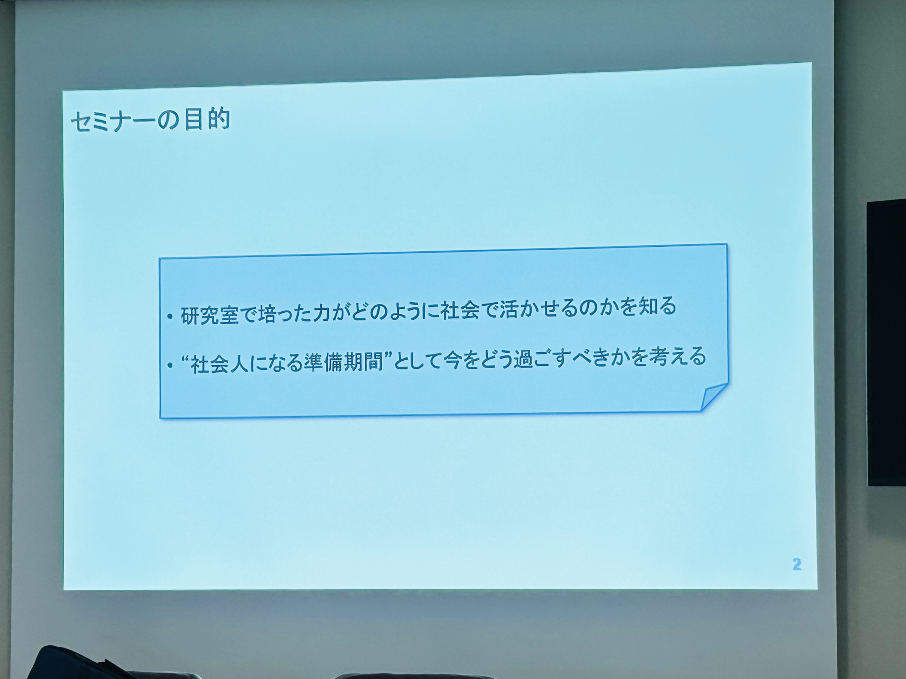 2025年度、卒業生セミナー第一弾!卒業生の熊谷佳起くんが、後輩たちのためにセミナーに来てくれました。