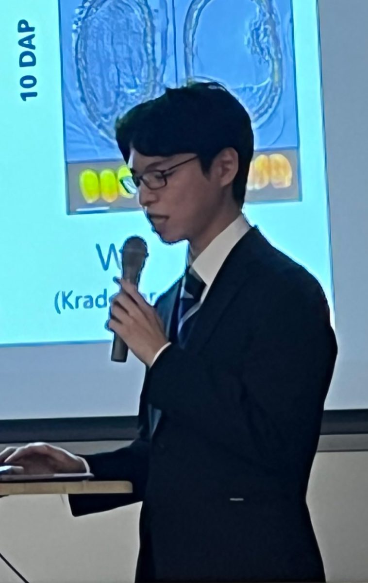 振り返ってみれば、あっという間に2年間が過ぎていましたが、講義に実験、学会や修士論文などなど、イベント尽くしで非常に濃い大学院生活を送れたと思います。私はこれまで植物を実験で扱ったことがなく、右も左も分からない状態だったのですが、卒業まで漕ぎつけることができました。これもひとえに先生方や技術補佐員の方々の指導の賜物です。本当にありがとうございました。研究ばかりでなく同期にも恵まれ、新鮮で楽しい日々を送ることができました。夏には花火をしたり、リフレでゲームをしたり、ご飯を食べに行ったりと、リフレッシュもしつつ大学院生活を送れたのは思い出に残っています。皆さんには心から感謝しています。