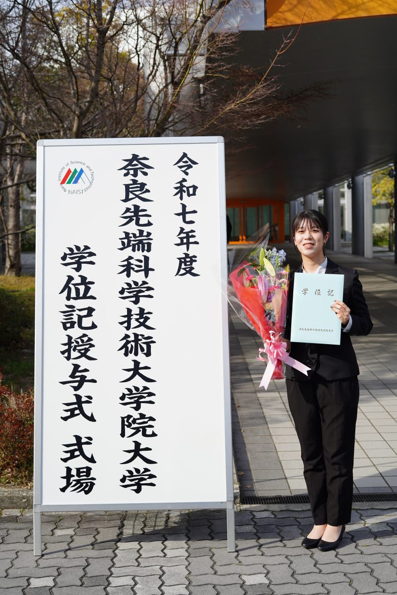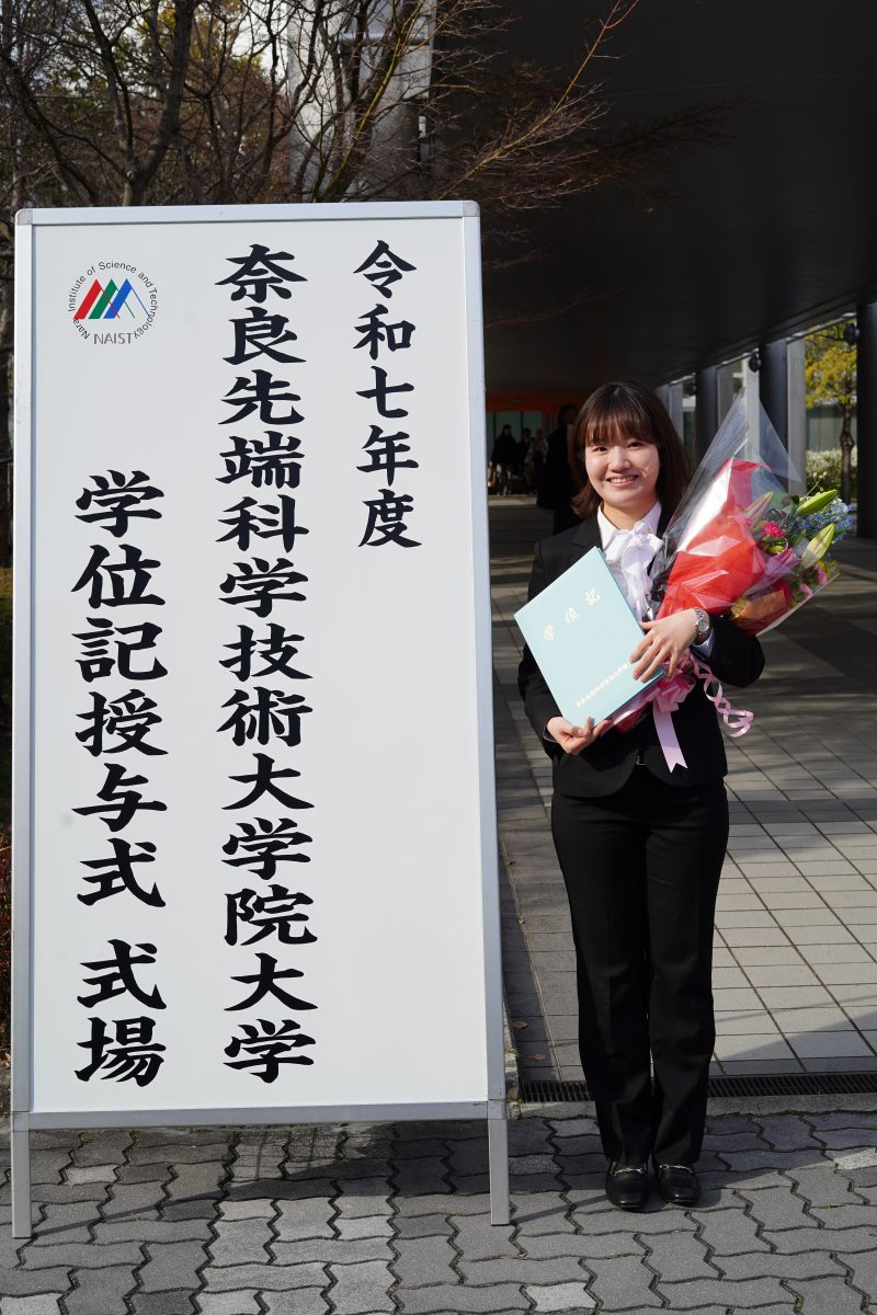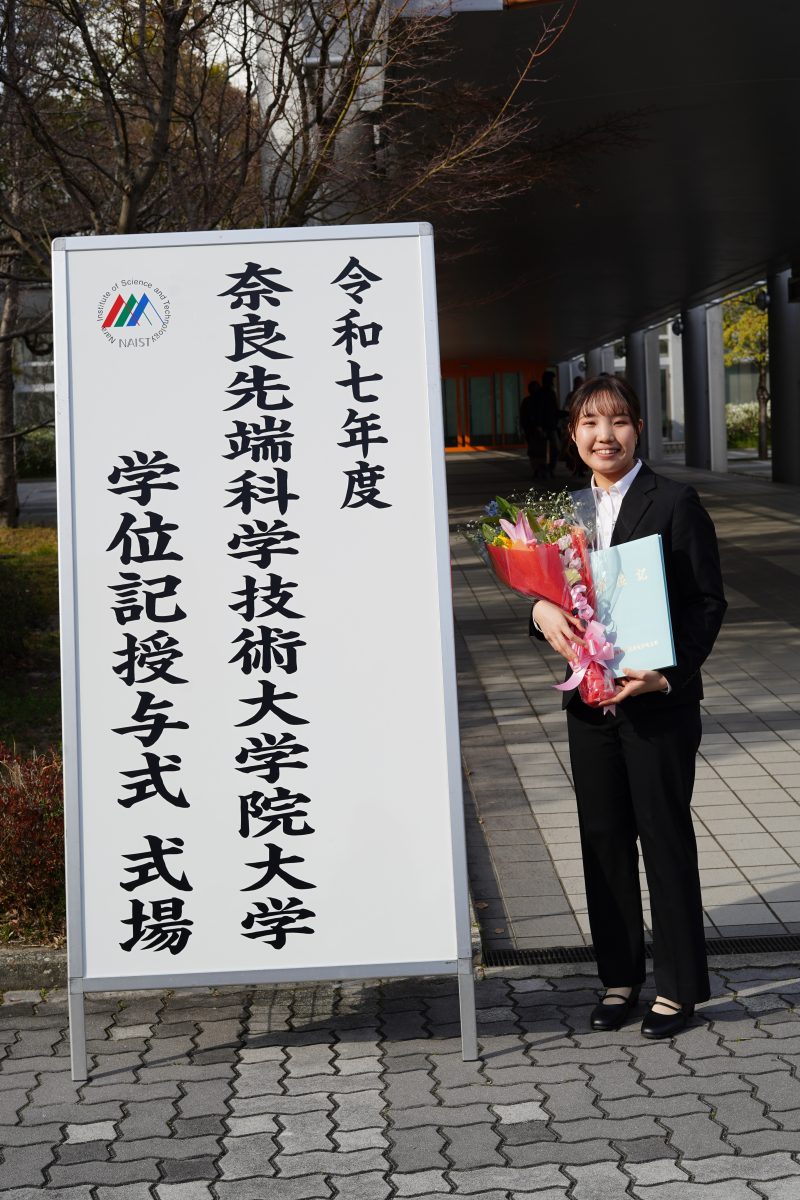 学部時代とは異なる分野に進むことに、不安を感じる方も多いと思います。実際、最初は専門用語や考え方の違いに戸惑うこともあるかもしれませんが、先端大では先生方がとても親身に指導してくださり、基礎から丁寧にサポートしていただけます。分からないことがあっても気軽に相談できる環境が整っているため、少しずつ理解を深めながら研究に取り組むことができます。また、周囲にも同じように分野を変えてきた学生が多く、お互いに助け合いながら成長できる点も大きな魅力だと感じました。最初の不安は決して特別なものではないので、安心して新しい分野に挑戦してみてください。