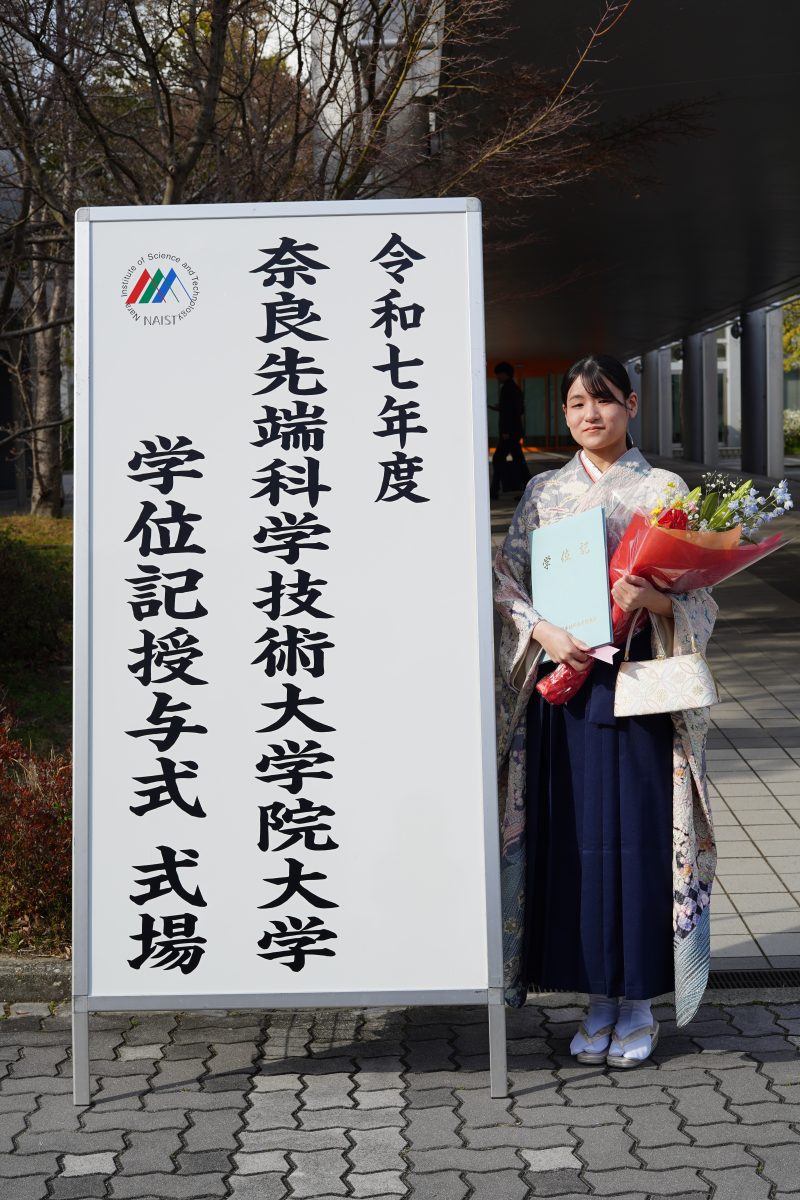 NAIST、特に伊藤研は研究環境として素晴らしい場所だと思います。高性能な機器も揃っており、先生方も他のメンバーも真摯に相談に乗ってくださるため、研究生活で生じる様々な困難も、最終的には乗り越えられるようになります。きっと何とかなるので、息抜きをしながら、適度に頑張りましょう。いま在籍している後輩も、これから入学する後輩にとっても、これからの生活が充実したものになりますように!