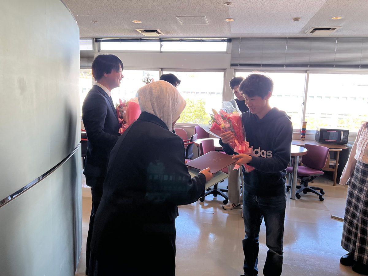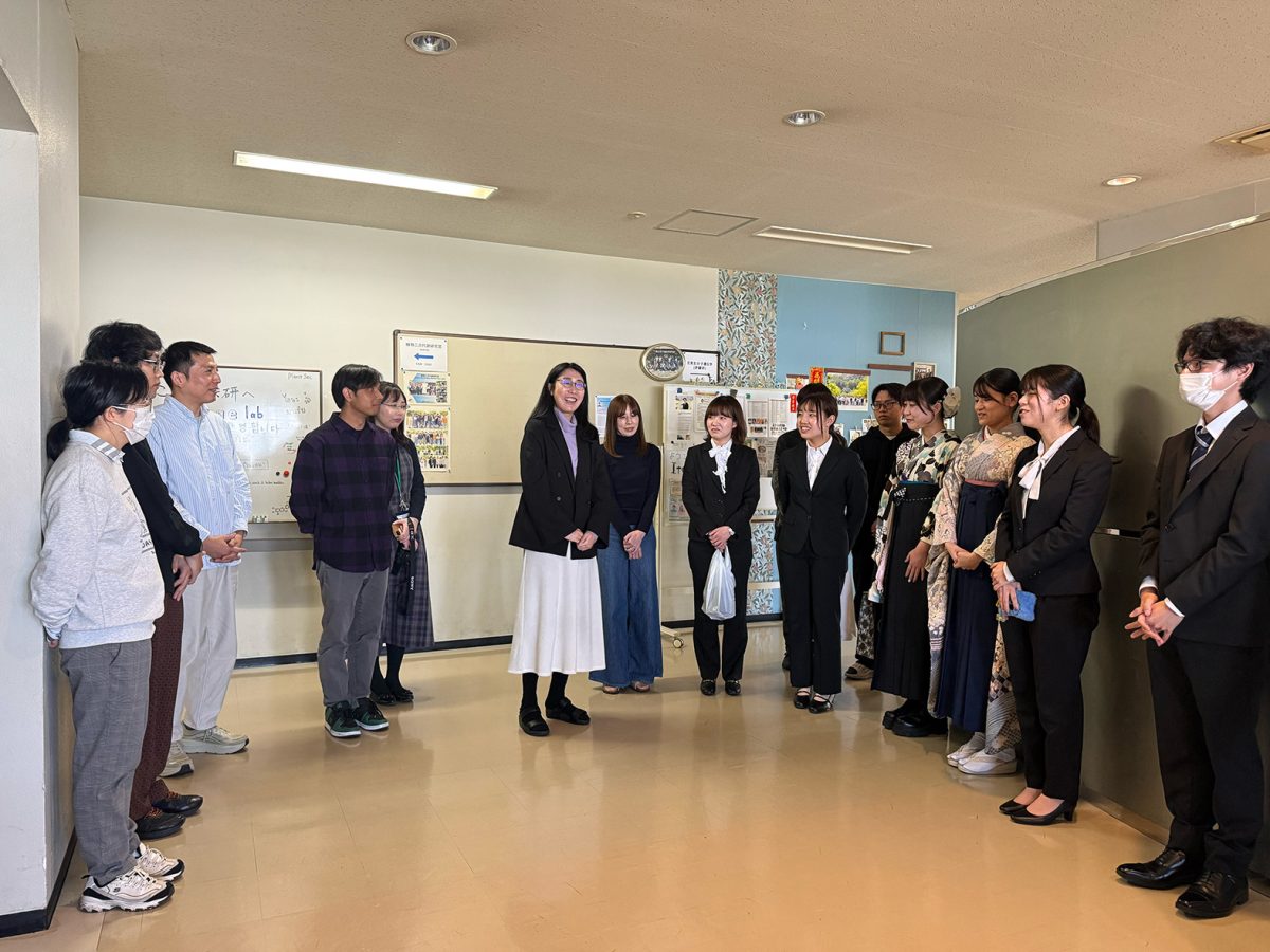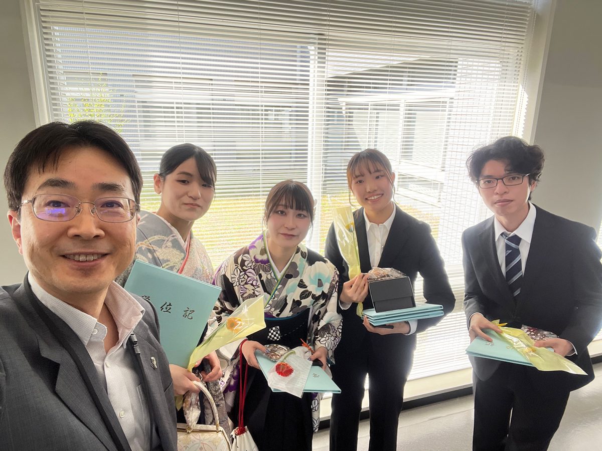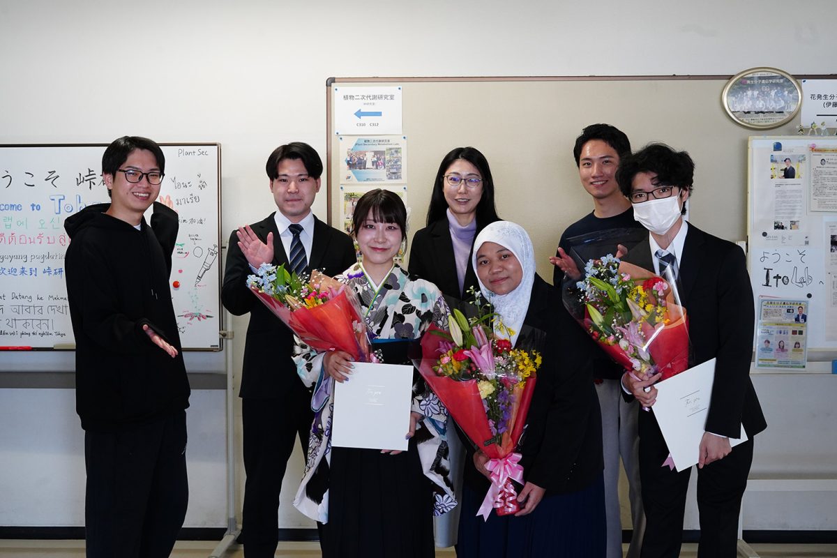 2025年度 2026年3月25日 2026年3月25日 3月24日、R7年度の学位授与式が行われました。伊藤研究室からはM2の石山さん、逢阪さん、太田くん、岡本さん、木谷さん、山崎くん、原田さん、そしてD3の古田くん、Putriさんが新たな門出を迎えられました。新しい環境でもきっと皆さんらしく輝かれることと思います。今後のご活躍を応援しています。ご卒業おめでとうございます!