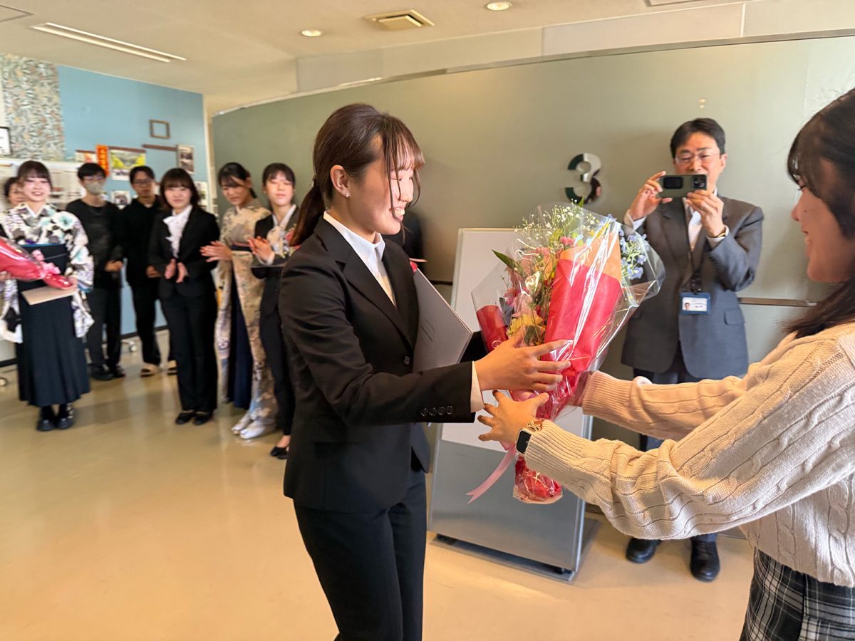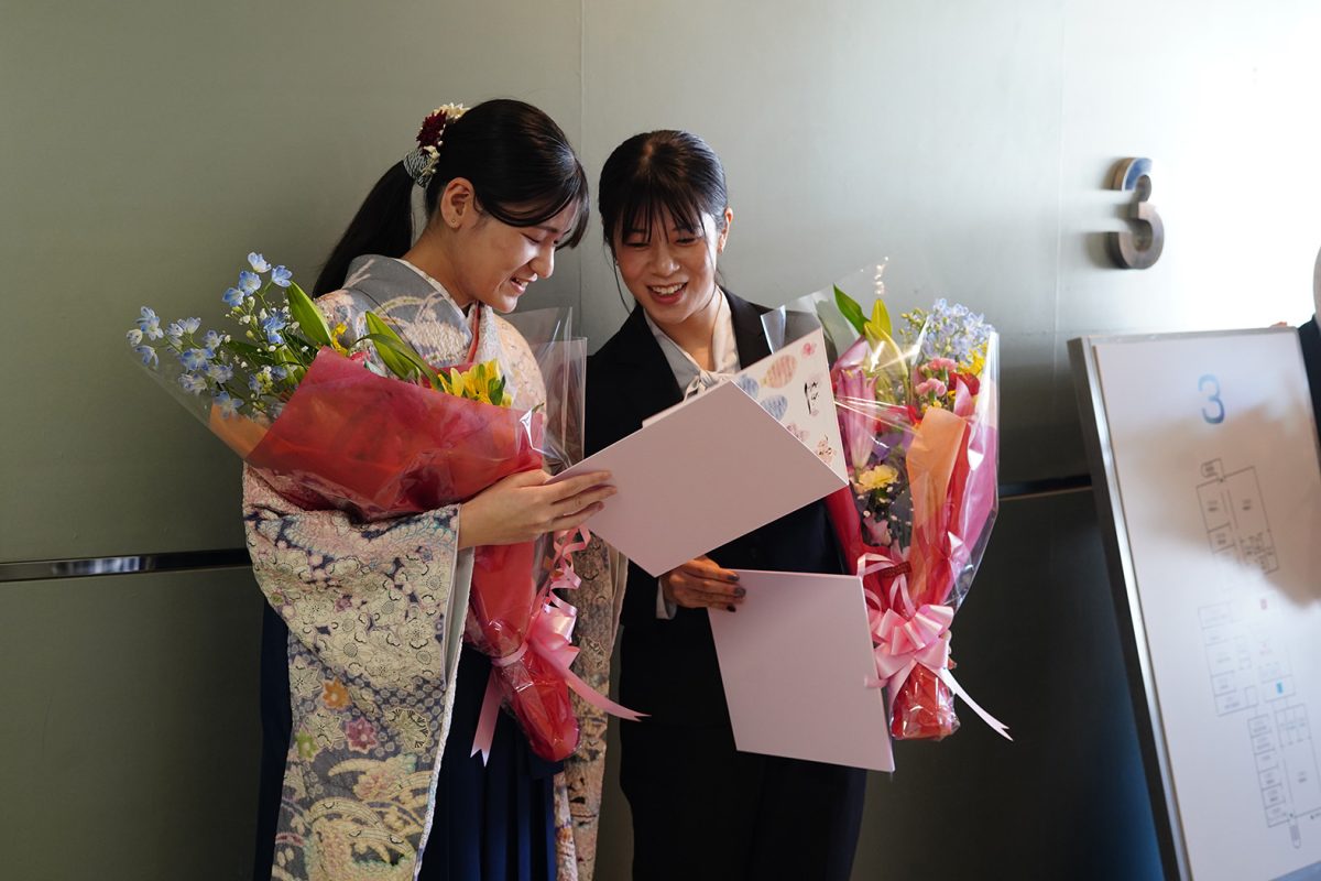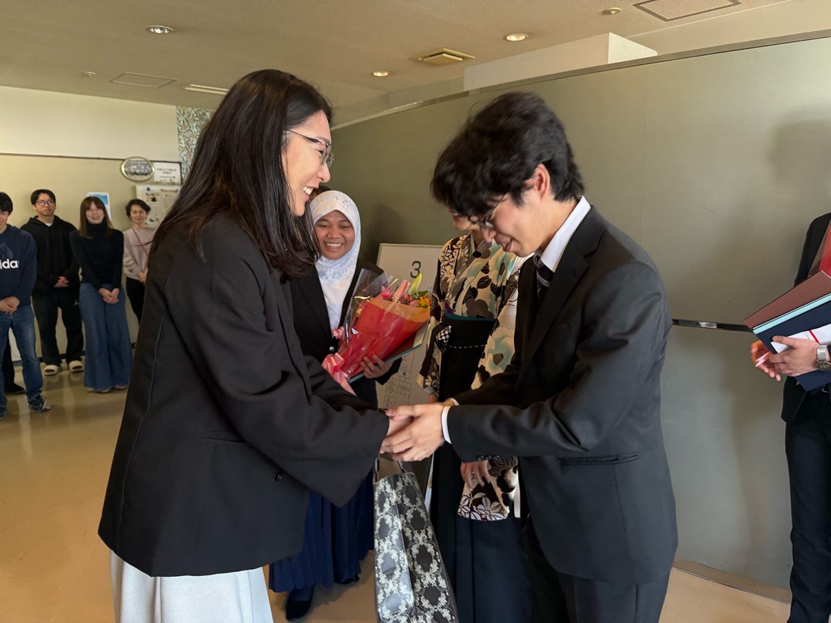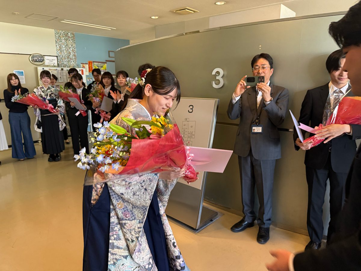 2025年度 2026年3月25日 2026年3月25日 3月24日、R7年度の学位授与式が行われました。伊藤研究室からはM2の石山さん、逢阪さん、太田くん、岡本さん、木谷さん、山崎くん、原田さん、そしてD3の古田くん、Putriさんが新たな門出を迎えられました。新しい環境でもきっと皆さんらしく輝かれることと思います。今後のご活躍を応援しています。ご卒業おめでとうございます!