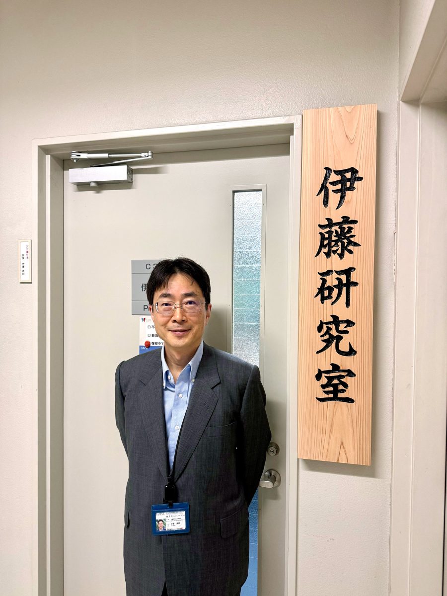 木のぬくもりが感じられる看板には「伊藤研究室」と力強い文字が刻まれており、研究室の入口がぐっと引き締まった印象に。思わず足を止めて見てしまう存在感です。さっそく入口に設置させていただき、研究室メンバー一同とても嬉しく思っています。