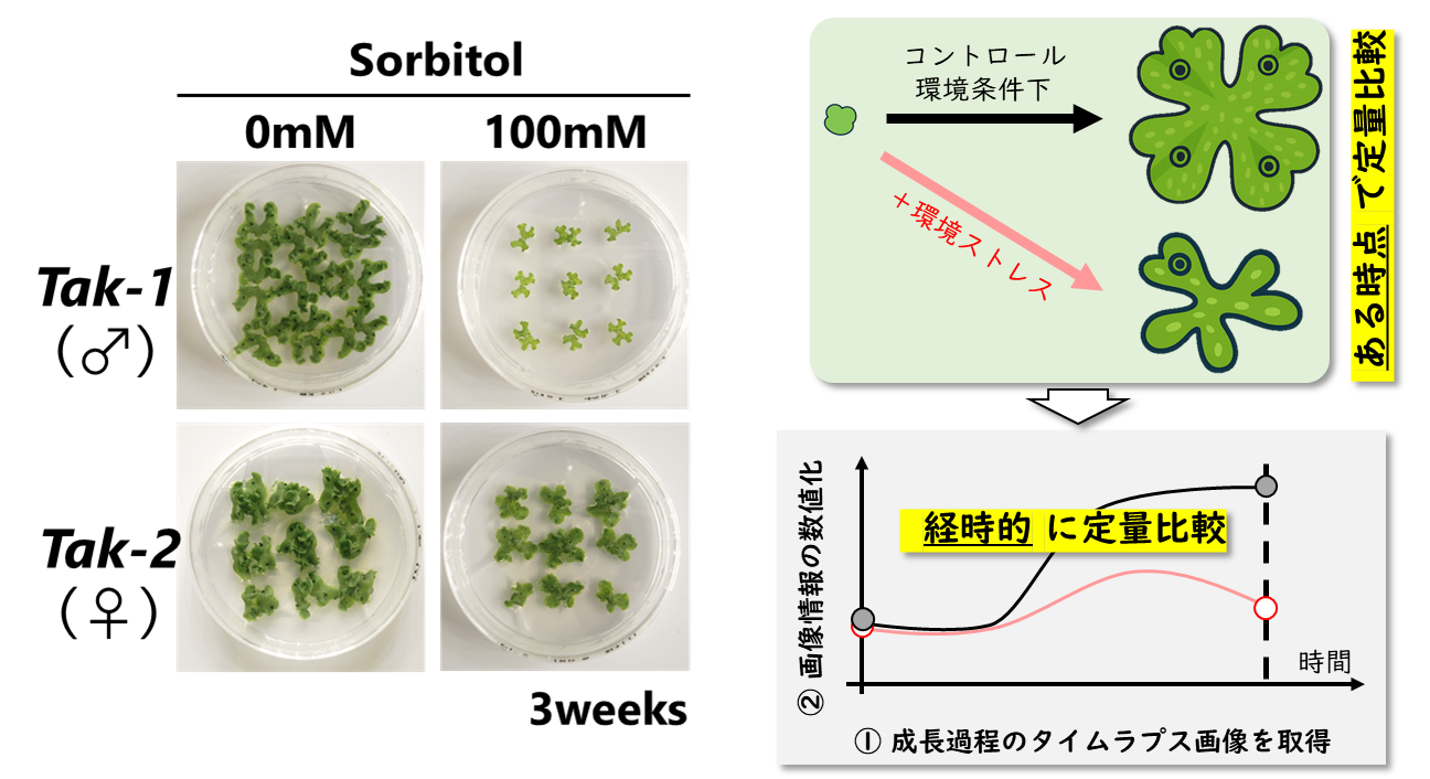 また、乾燥により発生を停止した植物が、再び水を得る事で発生を再開させる仕組みについても注目しています。