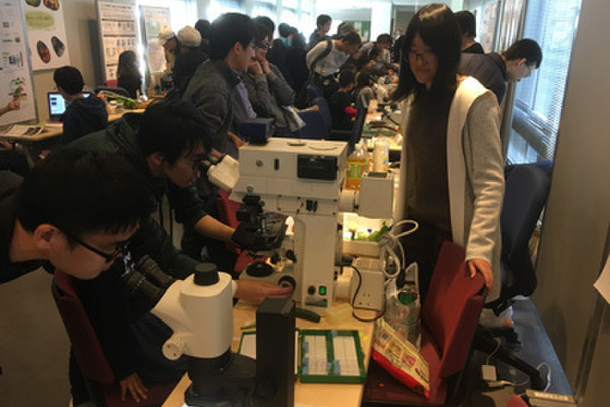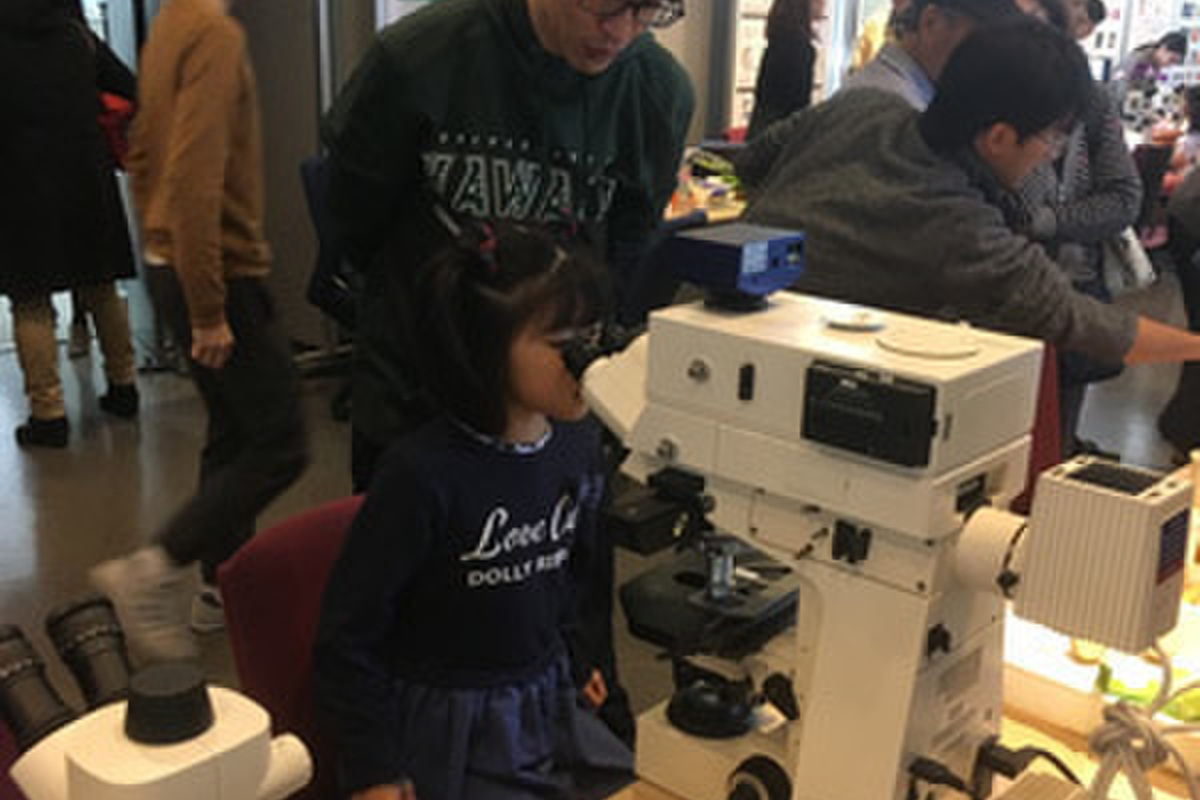 お天気に恵まれ今年も大盛況の市民向けオープンキャンパス。顕微鏡を使った細胞観察のデモを行いました。