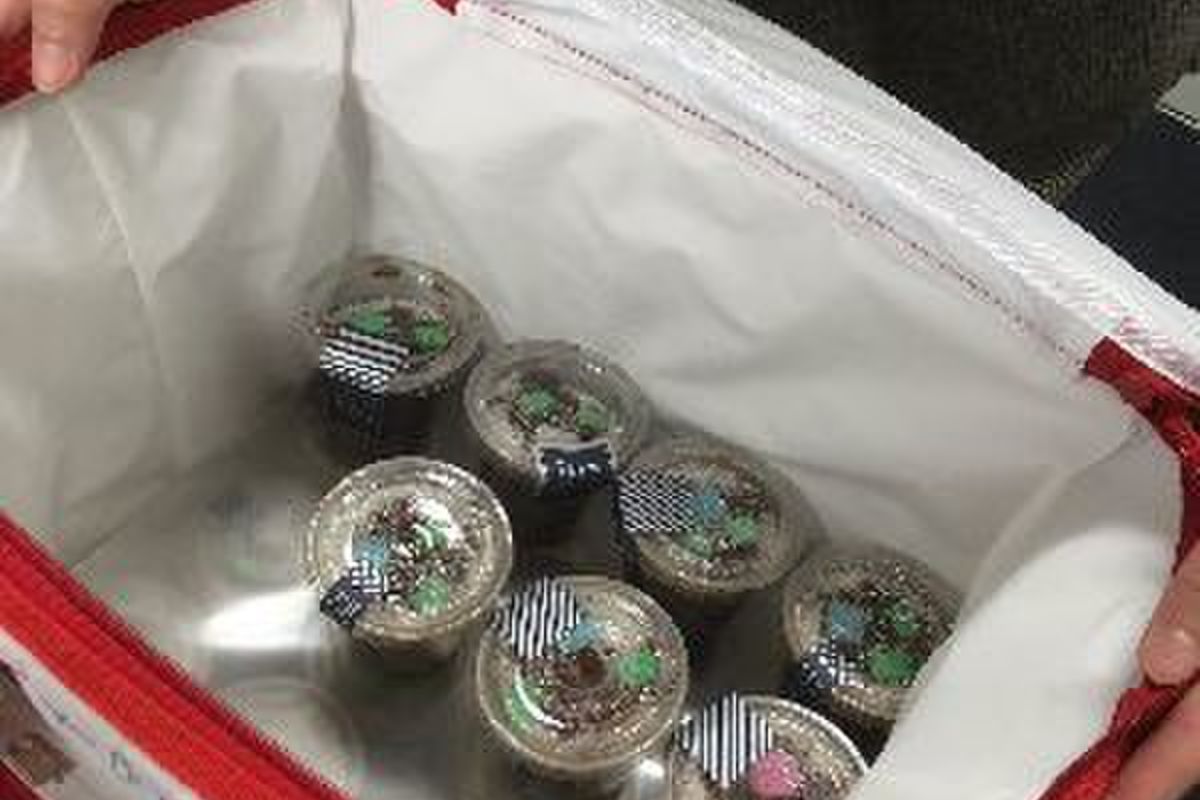 BLOG ゼニゴケバレンタイン 2019年02月18日 大学院生のMさんが巨大なクーラーバックを携えて登場。 バックの中身は自作のチョコムース40個! 見慣れぬトッピングは、Mさんが研究している「ゼニゴケの無性芽」とのことでした。 被さっているのは土まじりの春の淡雪? 2019 メンバー Back 戻る