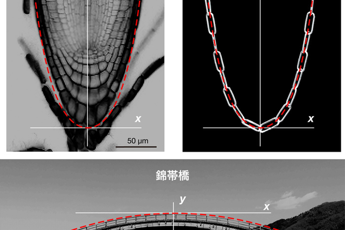 当研究室の郷達明助教が 大阪大学の藤本仰一先生や、本学出村研特任助教の津川暁先生(現、秋田県立大学)を始めとする数理生物学や生物物理学の専門家と共同で行った研究成果を、阪大、奈良先端大、神戸大から共同でプレスリリースしました。植物の根の先端ドームの形状が、植物種を問わずにカテナリー曲線に近似されることを、実験と数理の共同研究で明らかにしたユニークな研究です。