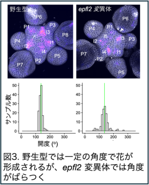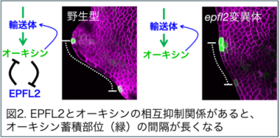 タイトル:Mutual inhibition between EPFL2 and auxin extends the intervals of periodic leaf morphogenesis(EPFL2 とオーキシンの相互抑制が葉の周期的な形態形成の間隔を伸ばしている)