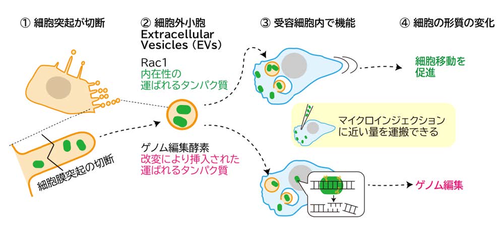 (細胞突起由来細胞外小胞を介したタンパク質送達による効率的な細胞形質転換)