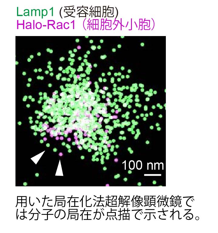 図 2 の③の放出過程を可視化したと思われる超解像観察(奈良先端大で実施)。