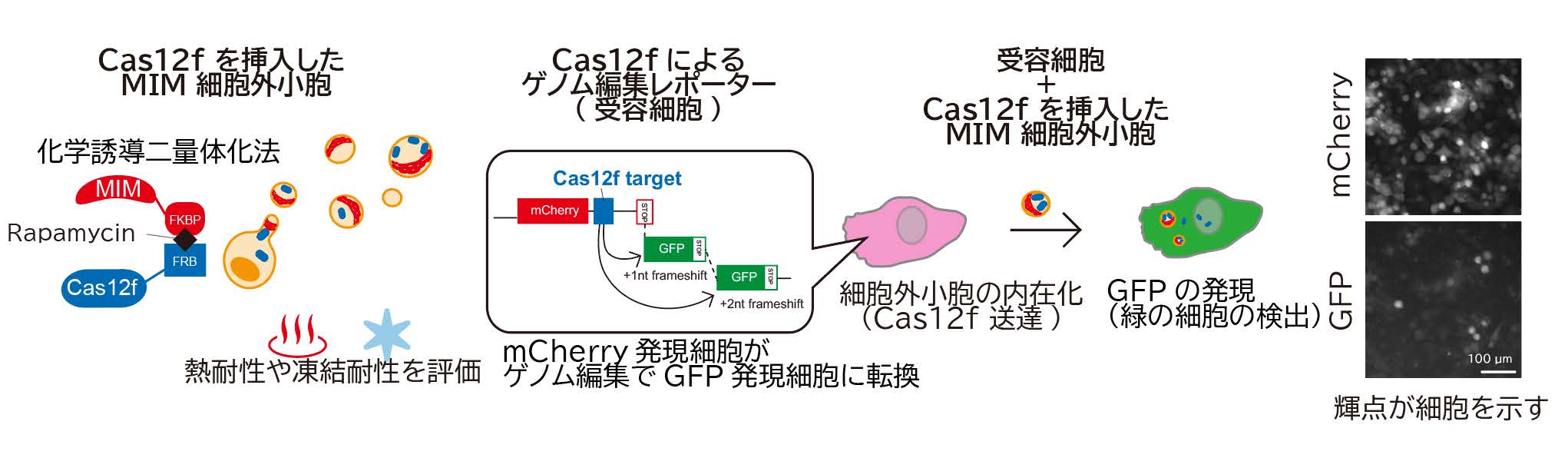 加熱や凍結後も、Rac1 および Cas12f が機能を保持していることが確認されました。